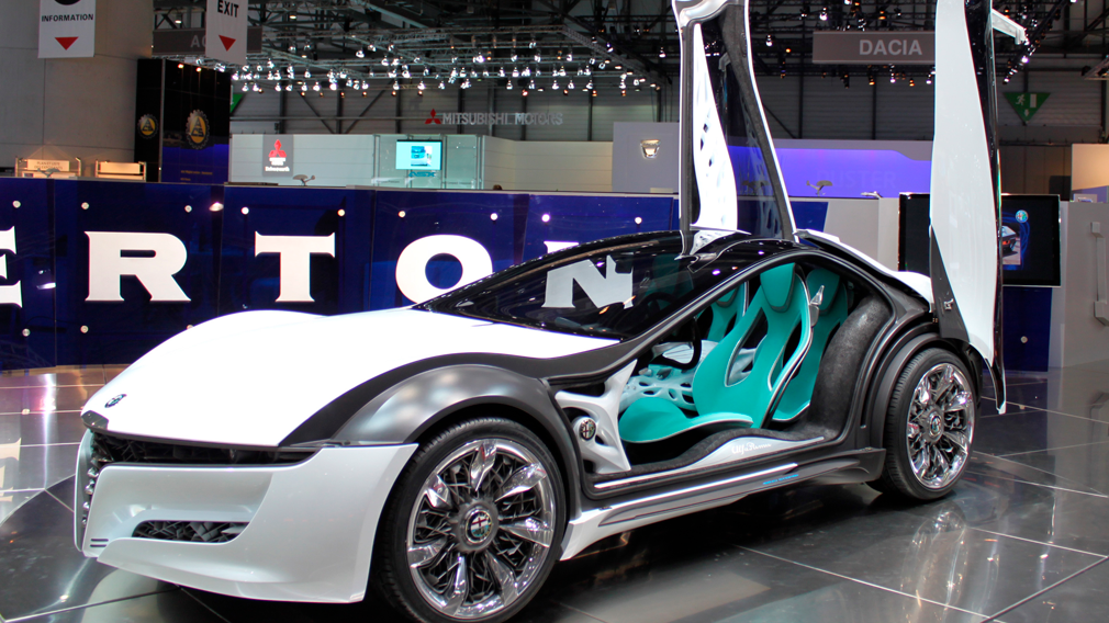 Это тоже только концепт-кар, разработанный в итальянском ателье Stile Bertone и посвященный 100-летию марки Alfa Romeo - в 2010 году. И с дверью тут сразу две "фишки" - во-первых, она открывается вверх и назад, а во-вторых, собственно вся боковая часть кузова и есть дверь. Наверное, без фото даже не сразу понятно, как это может выглядеть, но смотрится и правда круто.