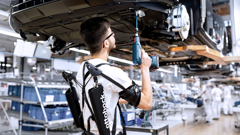 Новинки испытывают 60 рабочих, трудящихся в сборочном и лакокрасочном цехах. Модели экзоскелетов — Paexo (фирма Ottobock) и Skelex 360 (фирма Skelex). Оба устройства носятся на плечах, как обычный рюкзак, и крепятся вокруг пояса и бёдер специальными лентами.