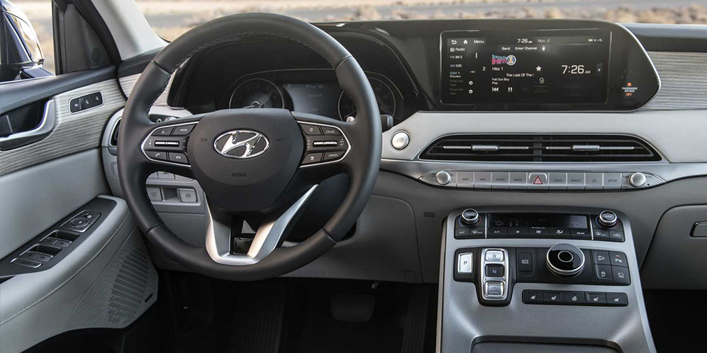 В штатное оснащение Hyundai Palisade входят цифровая «приборка», круговой видеообзор, проекционный экран, а также мультимедийная система с многофункциональным тачскрином диагональю в 10,25 дюйма.