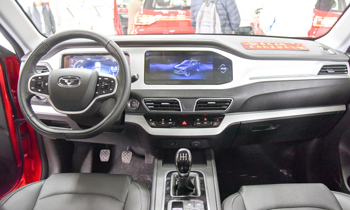 Оформление салона Cowin Showjet весьма отличается от «родительского» — там есть оригинальная цифровая «приборка», стильный 2-спицевой руль и новый блок управления климатической установкой.