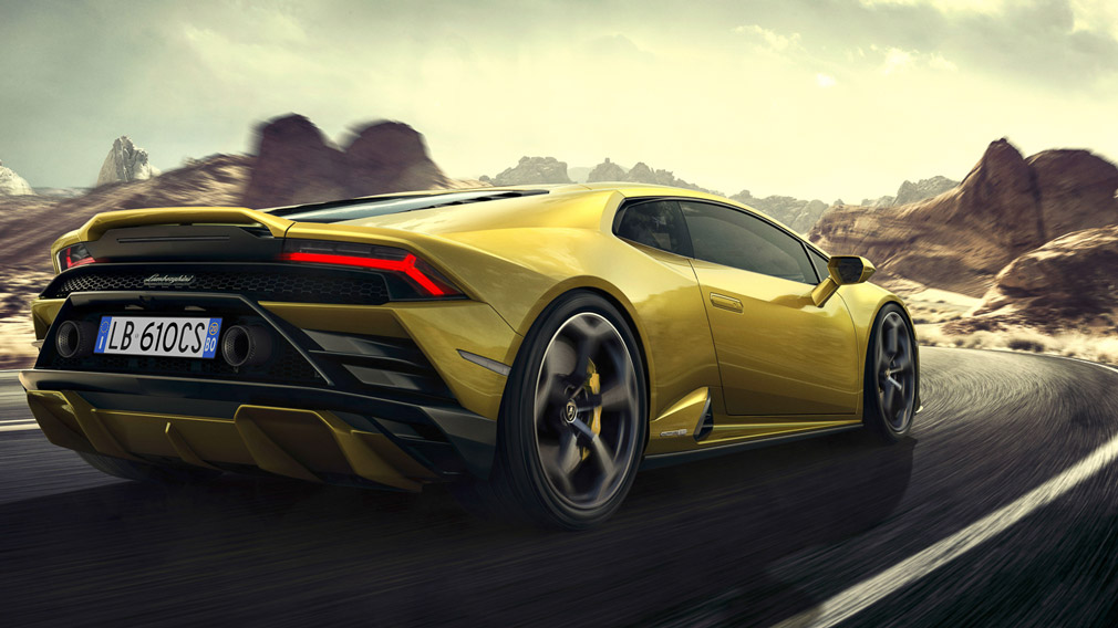 Заднеприводный «Ламбо» оснащён 610-сильным бензиновым V10 объёмом в 5,2 л., работающим в паре с 7-ступенчатым «роботом» с двойным сцеплением, оснащённым функцией управления стартом Launch control для максимального ускорения с места.