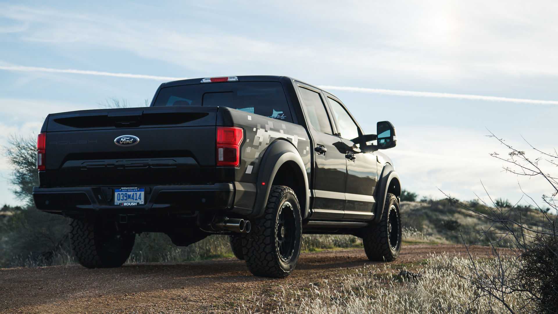 Кроме того, пикап получил фирменную внедорожную подвеску от Roush Performance и 22-дюймовые колёса, «обутые» в 33-дюймовые вездеходные шины. Из украшений — новая решётка радиатора и светящиеся шильдики с надписью «Roush».