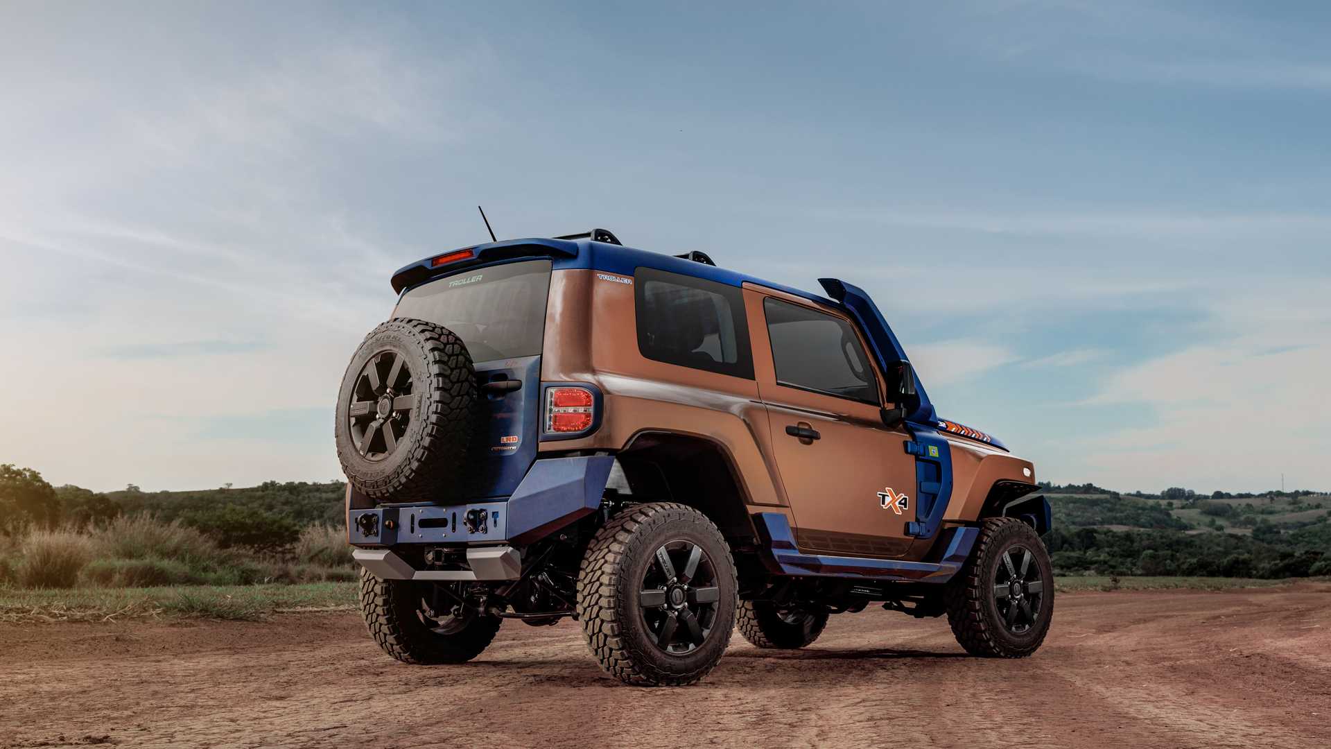 Новинка, получившая название Troller TX4 Automatic, представляет собой модернизированную версию обычного Ford Troller. Это короткобазный 3-дверный автомобиль рамной конструкции, дополнительно оснащённый шнорхелем, боковыми отбойниками, силовыми бамперами и светодиодной оптикой.