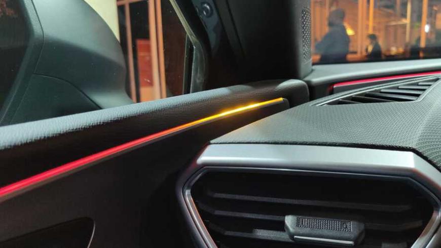 Интересной особенностью новых SEAT Leon стала дополнительная подсветка салона светодиодными полосами, вмонтированными в карты передних дверей. Она может предупреждать водителя о наличии автомобиля в «слепой зоне».