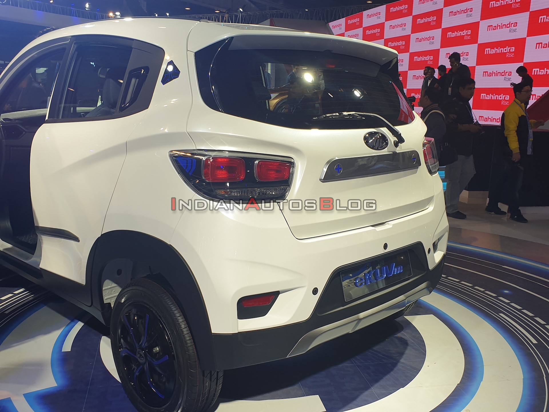 Электромобиль создан на базе уже выпускающегося компактного кроссовера Mahindra KUV100. Внешне он отличается от «донора» несколькими деталями — заглушкой вместо решётки радиатора, декоративными элементами синего цвета (он показывает, что привод — электрический) и колёсами нового дизайна.