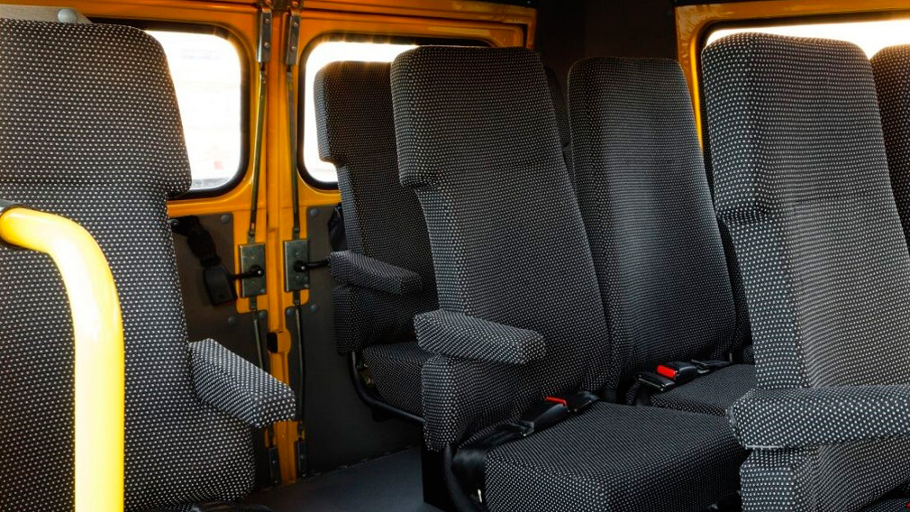 Кроме того, школьные «Буханки» получили полки для перевозки сумок, сделанные так, что вещи не могут упасть при езде по неровной дороге, особые датчики, благодаря которым они не могут начать движение с открытыми дверями, а также кнопки экстренной связи с водителем на каждом ряду сидений.