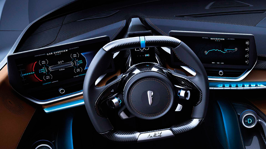 Гиперкар Pininfarina Battista получит полный привод и 4 электродвигателя, суммарная мощность которых составит 1 900 л. с., а крутящий момент — 2 300 Нм. Они будут получать энергию от аккумуляторной батареи на 120 кВт/ч.