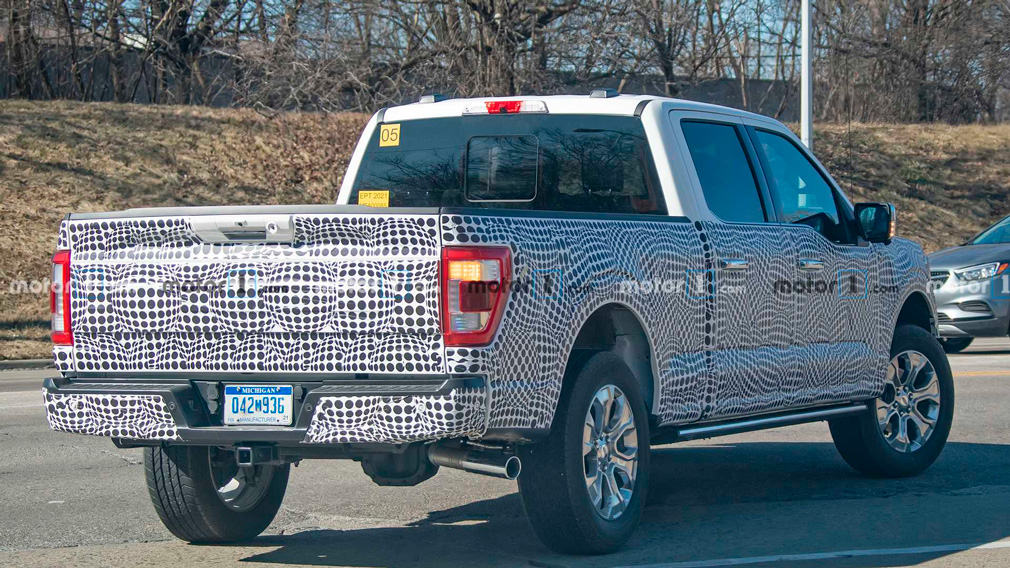 Сквозь камуфляж можно рассмотреть, что пикап хотя и сохранил свой фирменный «рубленый» дизайн, но острых граней на кузове стало меньше — его формы немного сглажены. Тем не менее, внешность новинки по-прежнему весьма агрессивна.