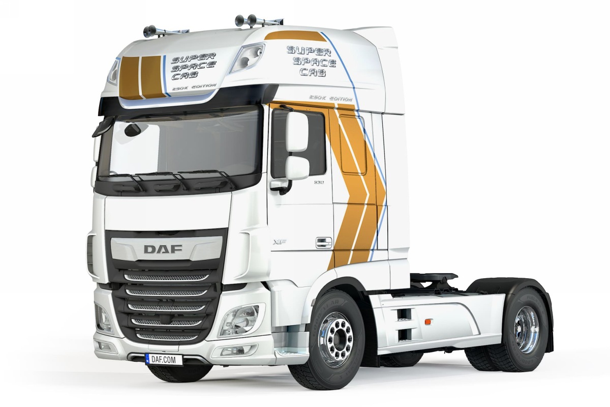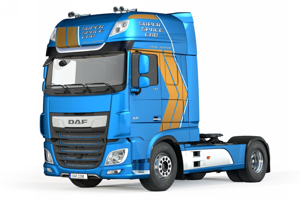 Фирма DAF Trucks (Нидерланды) выпустит спецверсию своих седельных тягачей серии XF, посвящённую выпуску юбилейной кабины Super Space Cab — она имеет номер 250 000.