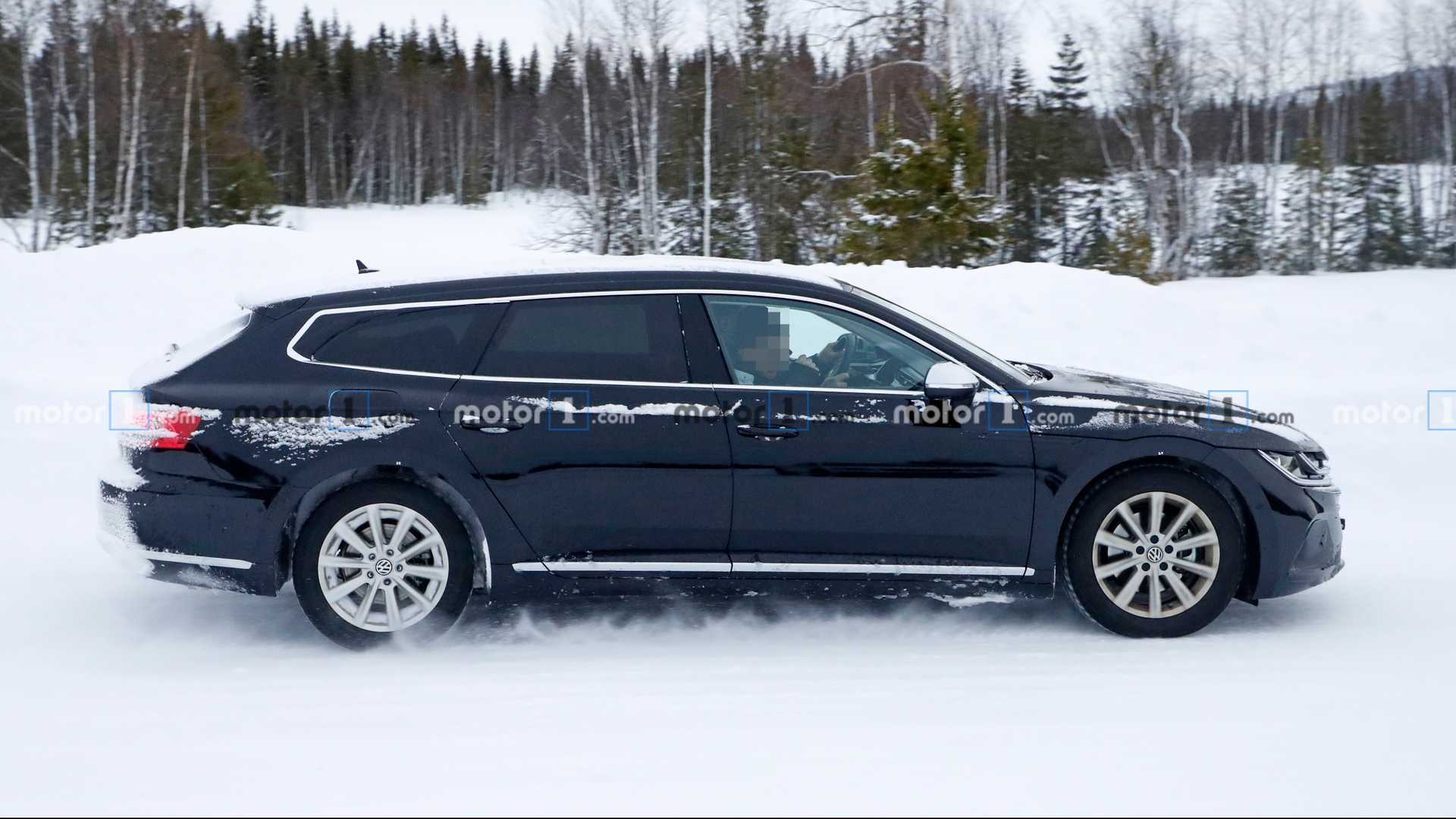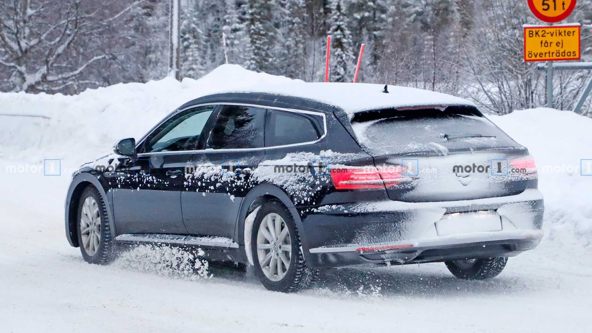 По заснеженным дорогам северной части Швеции носится «мул» мощного универсала Volkswagen Arteon R Shooting Brake. Презентация автомобиля должна состояться в начале 2021 г.