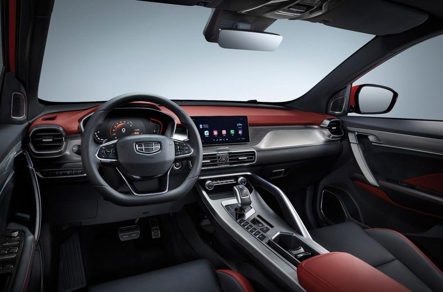Исполнение Geely Coolray Flagship Sport отличается от стандартных версий светодиодными фарами, панорамной крышей с люком, спойлером и корпусами наружных зеркал с отделкой под карбон, а также обшивкой из эко-кожи и декоративными элементами, сделанными из матового алюминия.