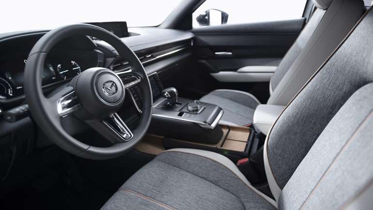В штатное оснащение Mazda MX-30 First Edition входят: виртуальная «приборка», многофункциональный руль с кожаной отделкой, водительское кресло с электрорегулировками по 8-ми направлениям и многое другое.