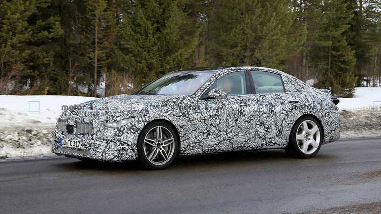 Продолжаются ходовые испытания седана Mercedes-Benz C-Кlassе нового поколения. В этот раз на дорогах появился прототип его «заряженной» версии AMG C-53.