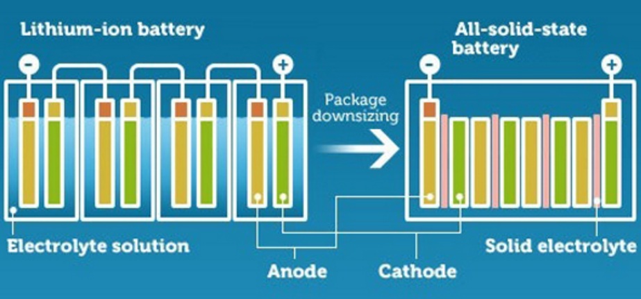 Это так называемые твердотельные батареи, в которых нет жидкого или гелеобразного электролита. В отличие от популярных сегодня литий-ионных аккумуляторов, они обладают более высокой плотностью энергии.