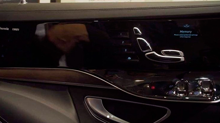 Помимо новейшей мультимедийной системы MBUX, уже ставшей на автомобилях из Штутгарта мейнстримом, премиальный седан оснащён небольшими дисплеями, вмонтированными во все дверные карты. Они расположены рядом с клавишами электрорегулировки кресел.