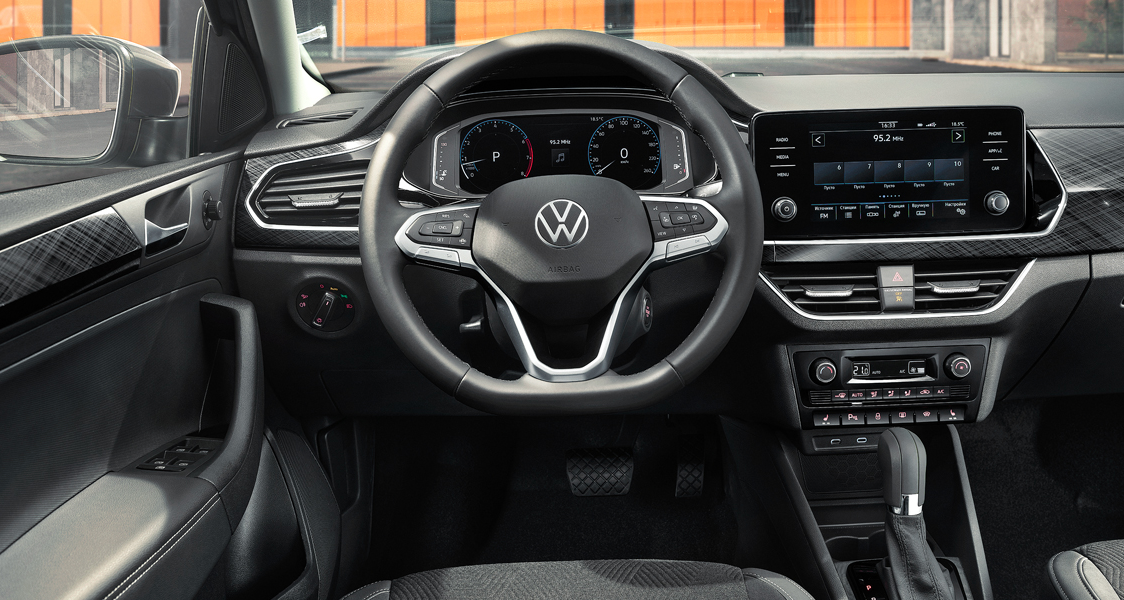 В конструкции салона почти ничего не изменилось. Интерьер нового Polo практически идентичен устройству салона европейского хетчбека. Новинка в элитной комплектации снабжена восьмидюймовым мультимедиа экраном, который поддерживает работу Android Auto и Apple CarPlay. Виртуальная комплектация приборов осталась в неизменном виде. Для удобства пассажиров, находящихся на заднем сиденье, добавлено несколько воздуховодов.