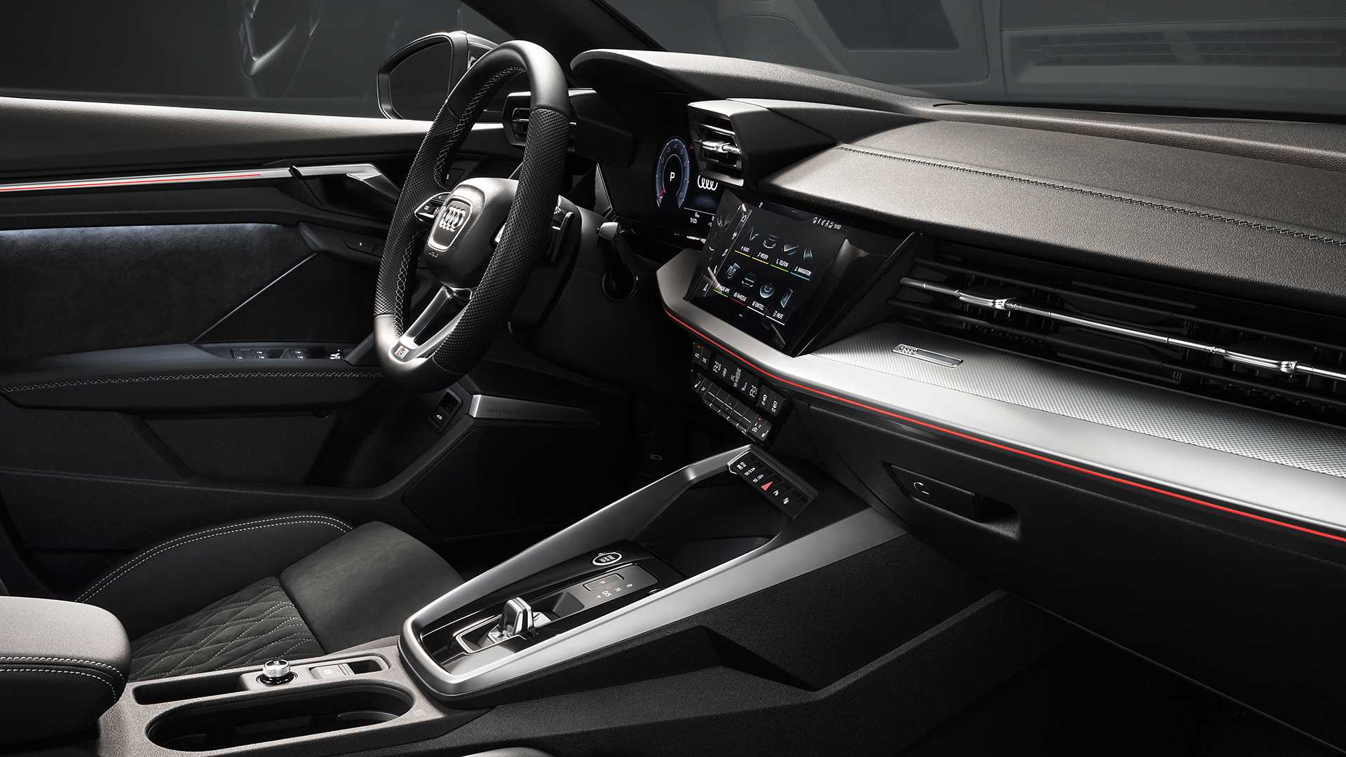Салон седана полностью повторяет Audi A3 Sportback: физические кнопки блока управления климат-контролем остались на месте, а тачскрин мультимедийной системы увеличился до 10,25 дюйма. За дополнительную плату можно получить «мультимедийку» с тачскрином в 12,3 дюйма и проекционным экраном.