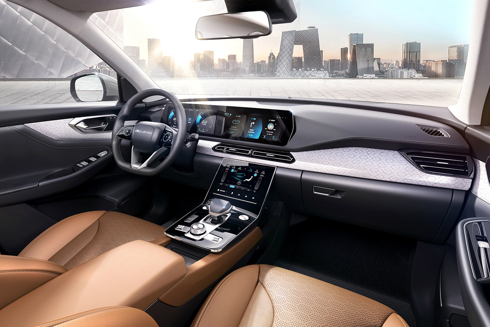 Оснащение у Beijing X7, что называется, «навороченное»: Новинка автомобиль имеет цифровую «приборку», а также 17 камер и датчиков, которые обеспечивают работу электронных систем безопасности, автоматического парковщика и системы распознавания лиц. Последняя расширяет возможности индивидуализации машины.