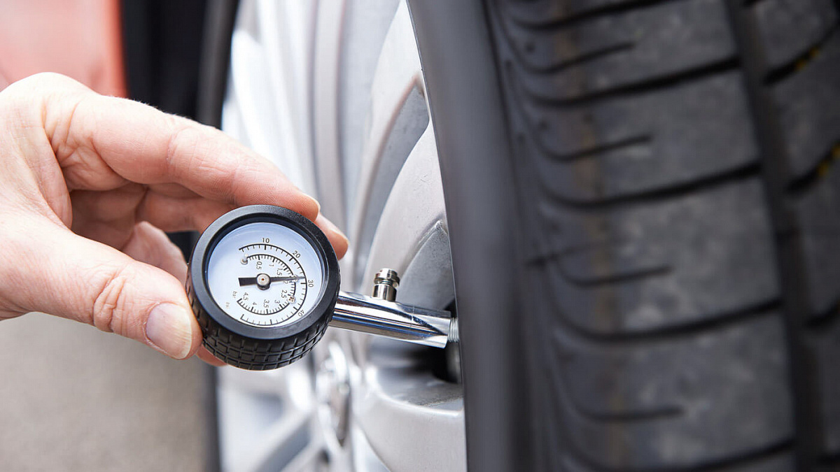 Проверку начинаем с шин: сначала — визуальный осмотр всех 4-х колёс, затем, если возникли какие-то сомнения, в ход идёт манометр. Если машина оборудована бортовым компьютером и датчиками давления в шинах — смотрим на их показания.