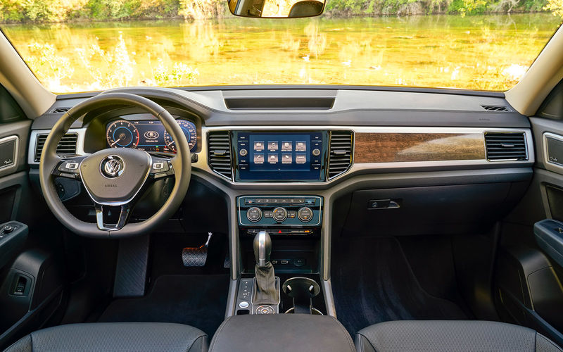 Интерьер салона с его фирменными хромированными вставками, качественной отделкой (опционально – кожаной), большими дисплеями, интерактивной приборной панелью и современной мультимедиа-системой – тоже вдохновляет поклонников Volkswagen Teramont. Его хвалят не только за простор, но и за комфорт. Несмотря на массу свободного места, все необходимое здесь остается под рукой.