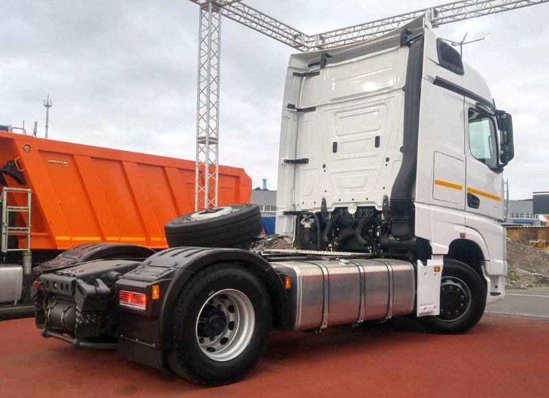 Кроме того, автомобиль имеет новую раму из высокопрочной стали, необслуживаемые передние ступицы и комфортабельную кабину от нового Merceds-Benz Actros, но с оригинальными облицовками и салоном.