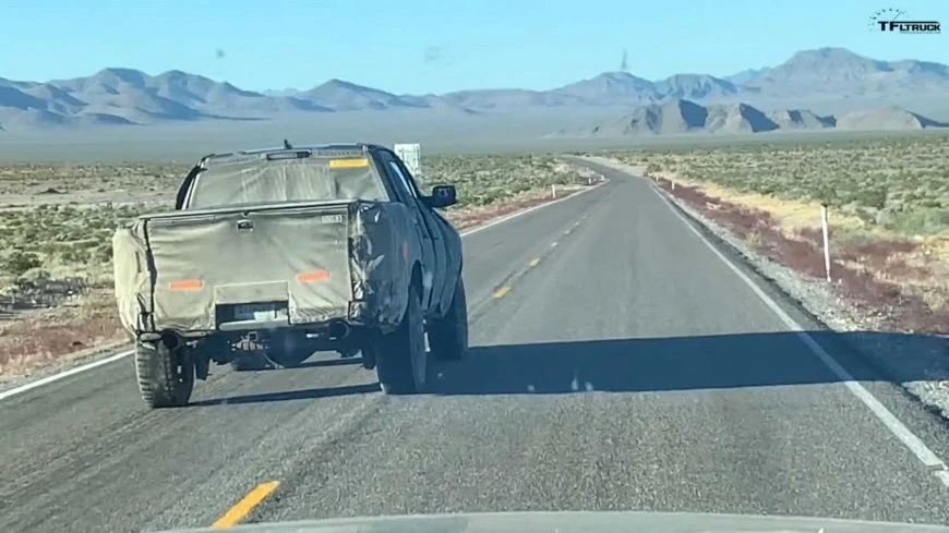 Встреченный каким-то любопытным американцем в штате Невада прототип RАМ Rebel TRX был скрыт под плотными камуфляжными завесами. Можно только определить, что размерами и очертаниями кузова он похож на RАМ 1500 актуального поколения, на базе которого и создан.