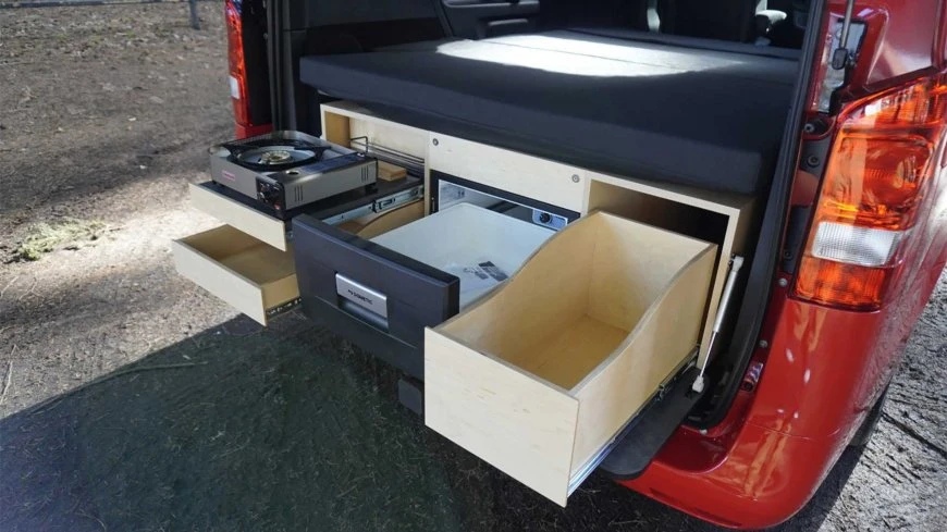Кроме того, кемпер оборудован мини-кухней с газовой плитой и небольшим холодильником. Имеются и отсеки для кухонной утвари, а также для вещей путешественников. Освещение жилого модуля — светодиодное, а для связи с внешним миром есть несколько USB-портов. Энергию для всего этого даёт дополнительная аккумуляторная батарея на 90 А/ч.
