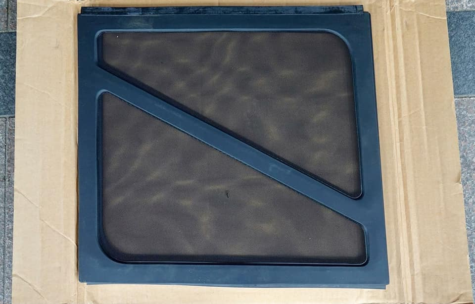 Во-первых, многих восхитила простота конструкции — хотя что там ещё придумывать. Это пластиковый контур, на который натянута мелкая сетка. Вставляется конструкция в открытое боковое окно внедорожника и, разумеется, точно соответствует его размерам.