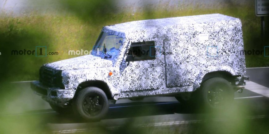 Сказать что-то по поводу дизайна Grenadier трудно — «мул» плотно прикрыт камуфляжной плёнкой и фальшпанелями. Можно только понять, что его очертания и габариты близки к новому Land Rover Defender и тому же «Гелику».