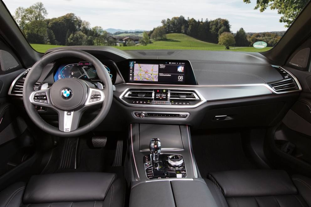 В штатное оснащение BMW X5 xDrive45e PHEV вошли цифровая «приборка», адаптивные светодиодные фары, камера заднего вида, передние кресла с обогревом и панорамный люк. Мультимедийная система имеет тачскрин диагональю в 12,3 дюйма и поддержку сервисов Apple CarPlay и Android Auto.