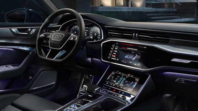 Внешне седан Audi A6 вполне узнаваемым благодаря "композиции" из широкой решетки радиатора и зауженных фар. Кстати, опционально доступны ещё и новые светодиодные фары HD Matrix - производитель уверяет, что они экономичны и долговечны. Доступны также другие "фишки", связанные со светом: светодиодная контурная подсветка салона с выбором из 30 цветов и проекция эмблемы Audi на дорогу при открывании передних дверей.