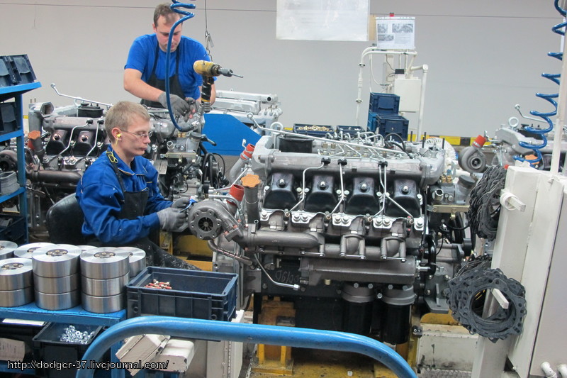 Один из роботов доставляет ящики с деталями с центрального склада в межконвейерную зону, второй — развозит их к конвейерам по сборке моторов V8 и новых Р6.