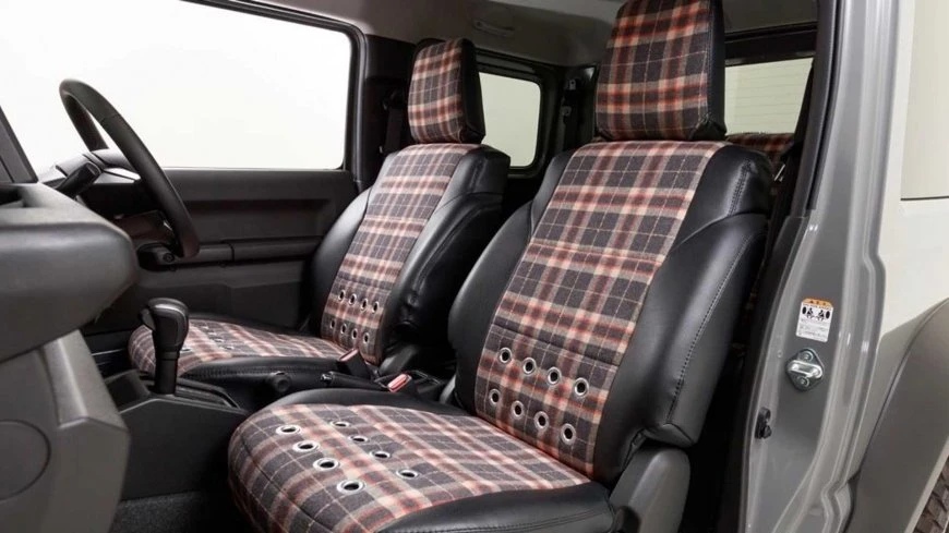 Кроме того, салон внедорожника отделан в том же стиле, что и у британской внедорожной легенды — например, сиденья обшиты тартаном («шотландкой»). Такое же исполнение получили все шильдики на кузове.