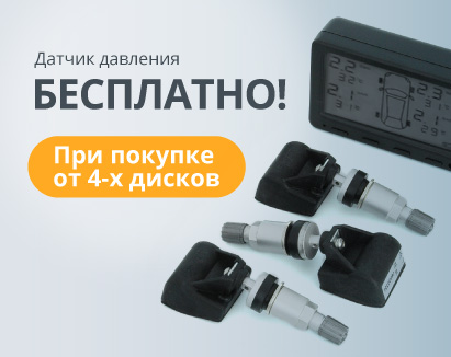 При покупке комплекта дисков от 17 дюймов заказчик получает в подарок измеритель давления в шинах – датчик с сенсорным управлением и удобным жидкокристаллическим дисплеем.