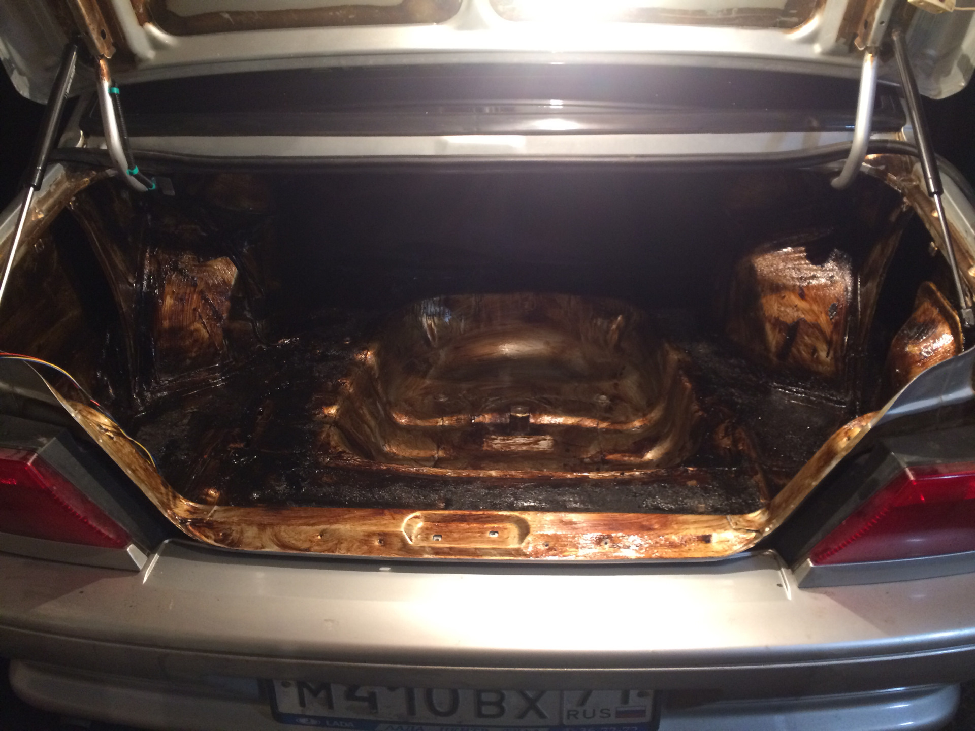 Поэтому, если, например, под покрытием пола багажника обнаружился слой «Тектила» или «Мовиля», толщиной превосходящий краску — значит в несчастный автомобиль основательно въехали сзади.