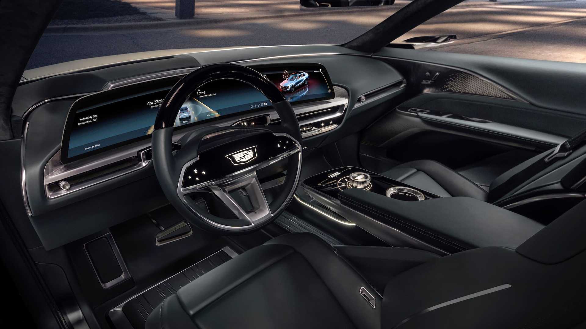 Кроме того, Cadillac Lyriq оснащён практически всеми современными электронными системами, а тачскрин его мультимедийной системы поражает воображение своими размерами — 33 дюйма по диагонали. Он включает в себя цифровую «приборку» и занимает в длину больше половины передней панели.