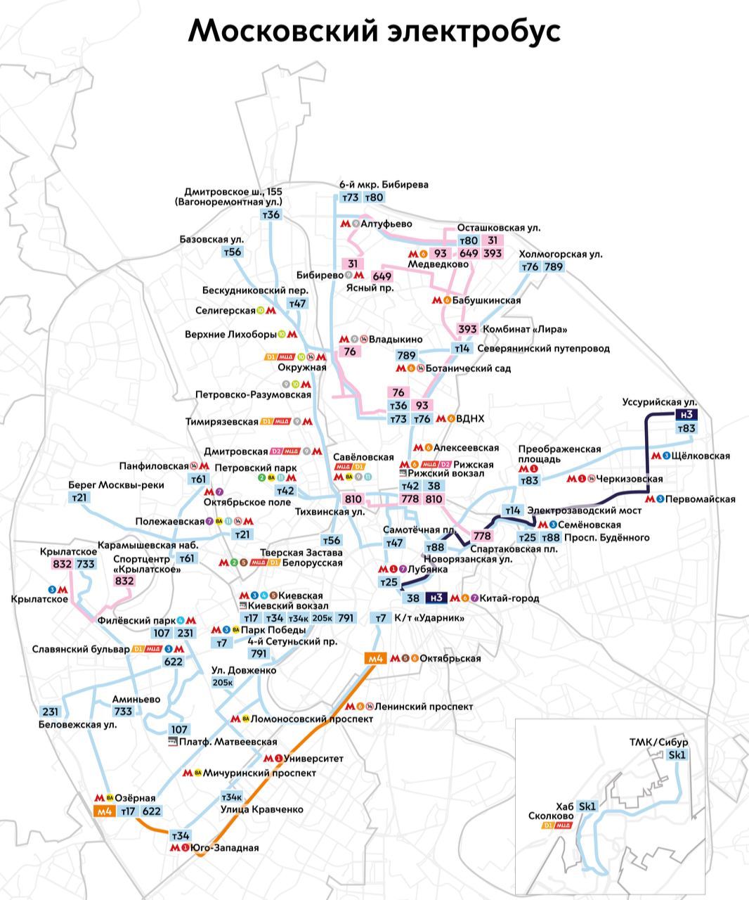 Московский дептранс опубликовал также карту маршрутов столичных электробусов: