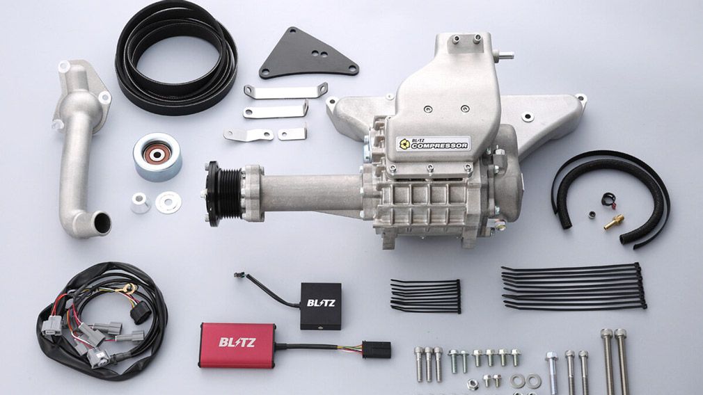 Набор состоит из компрессора типа Roots с механическим приводом, топливного контроллера, который избавляет от необходимости перепрограммировать электронный блок управления двигателем, а также необходимых трубопроводов и проводов.