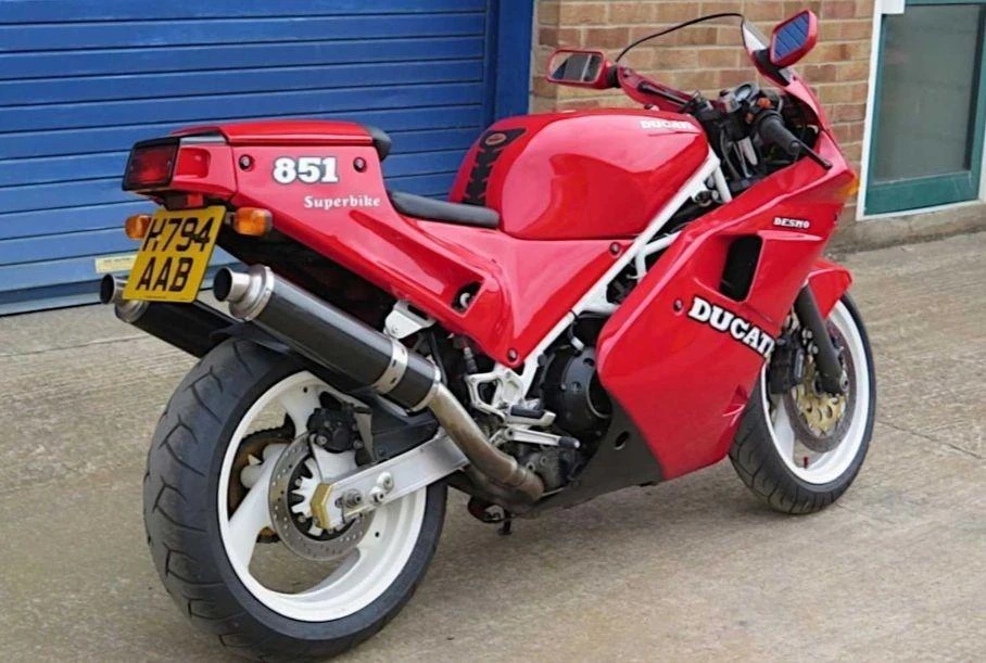 Джеймс Мэй приобрёл этот мотоцикл новым в 1991 г. Байк оснащён L-twin'ом объёмом в 1 л. и мощностью в 93 л. с. Пробег и техническое состояние этого Ducati 851 не разглашаются.