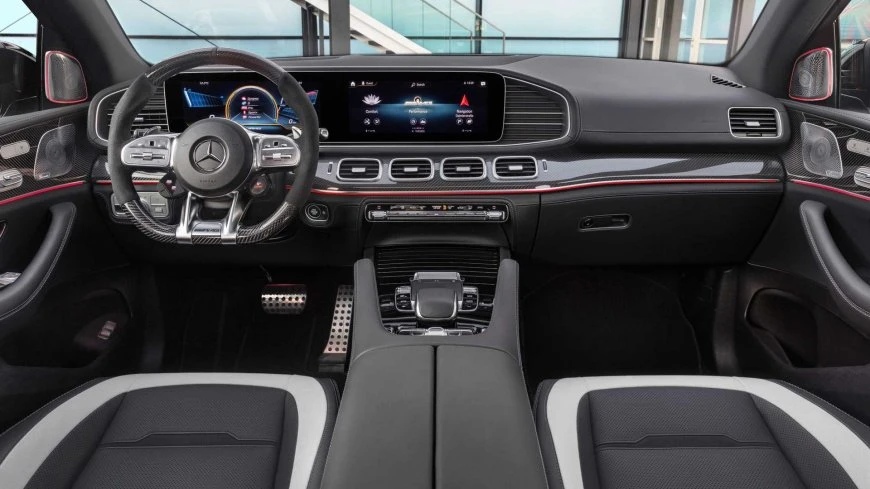 В штатное оснащение автомобиля входят адаптивная пневмоподвеска с системой активной стабилизации крена, спортивные сиденья AMG с обшивкой из кожи Nappa, набор электронных систем безопасности, фирменная мультимедийная система MBUX и премиальная аудиосистема Burmeister.