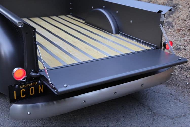 Пол кузова выполнен в фирменной стилистике Icon 4×4 — из африканского тика и сделанных из нержавеющей стали полос. В кабине появились кожаная обшивка сидений и деревянный обод руля одинакового цвета, выполненные в стилистике начала 50-х годов.