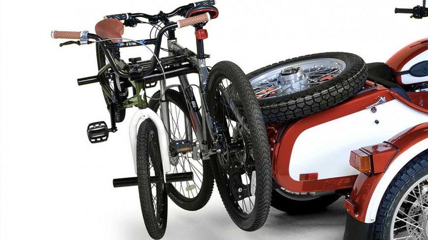 Такой сайдкар получил ветровое стекло для пассажира коляски, полноценную «запаску», 2 дополнительных прожектора на дуге безопасности «люльки», а также крепящийся к раме коляски дополнительный багажник, который можно превратить в крепления для велосипедов.