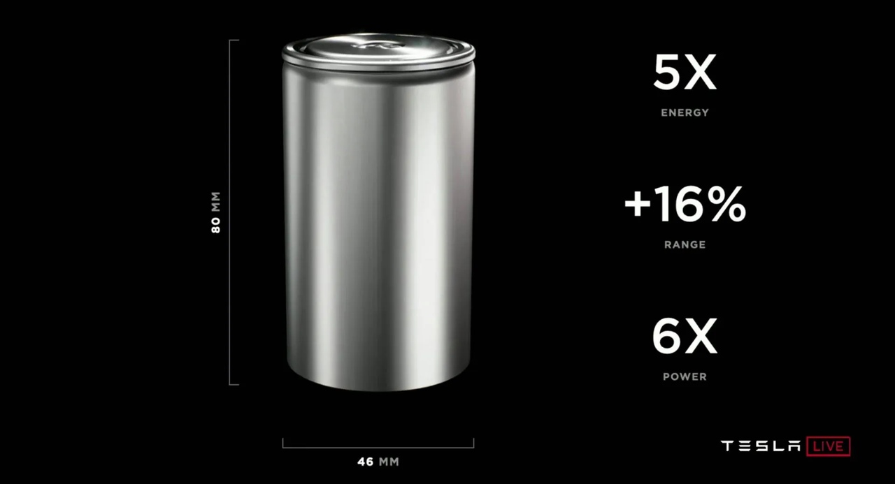 Новые аккумуляторы Tesla обладают в 5 раз большей энергоемкостью, чем прежние. Это приводит к увеличению дальности хода электромобилей на 16% и к снижению стоимости киловатт-часа на 14%.