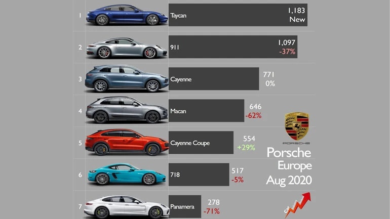 В течение последнего летнего месяца Porsche Taycan разошёлся тиражом в 1 183 экземпляра. «Серебряный» результат показал ветеран фирмы, спорткар Porsche 911 - продано 1 097 единиц.