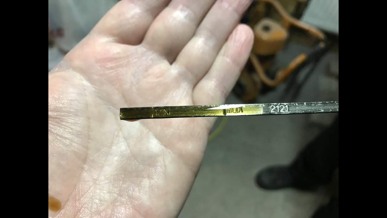 Открываем капот, достаём масляный щуп и протираем его тряпкой, не оставляющей волокон. Затем снова вставляем щуп до упора, ждём 2−3 сек., аккуратно вытаскиваем и смотрим, где расположена верхняя кромка масляного следа.