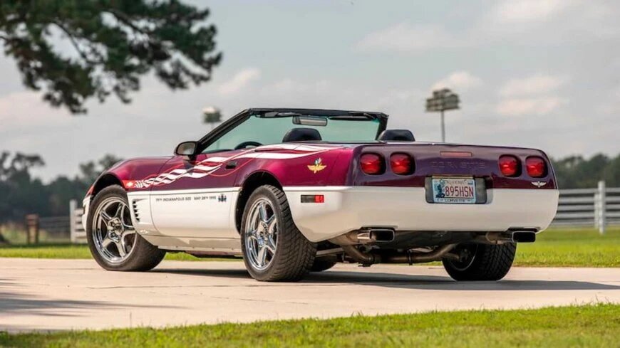 Это кабриолет Chevrolet Corvette Pace Car Edition, созданный в 1995 г. на базе только что появившегося 4-го поколения культового автомобиля. В таком исполнении, созданном в честь участия модели в легендарной гонке Indy 500, было выпущено 527 машин.