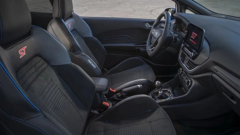 В салоне хэтчбека появились передние спортивные кресла Recaro, новая мультимедийная система с 8-дюймовым тачскрином, поддерживающая сервисы Apple CarPlay и Android Auto, карбоновые декоративные элементы, а также чёрная обшивка с контрастной синей прострочкой.