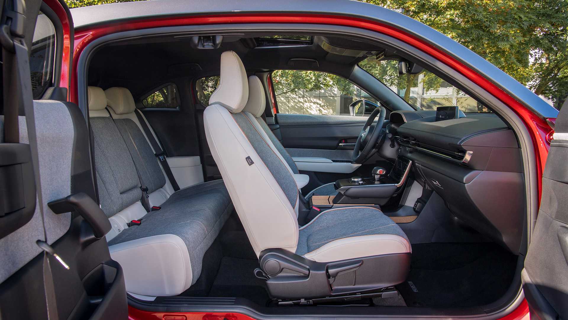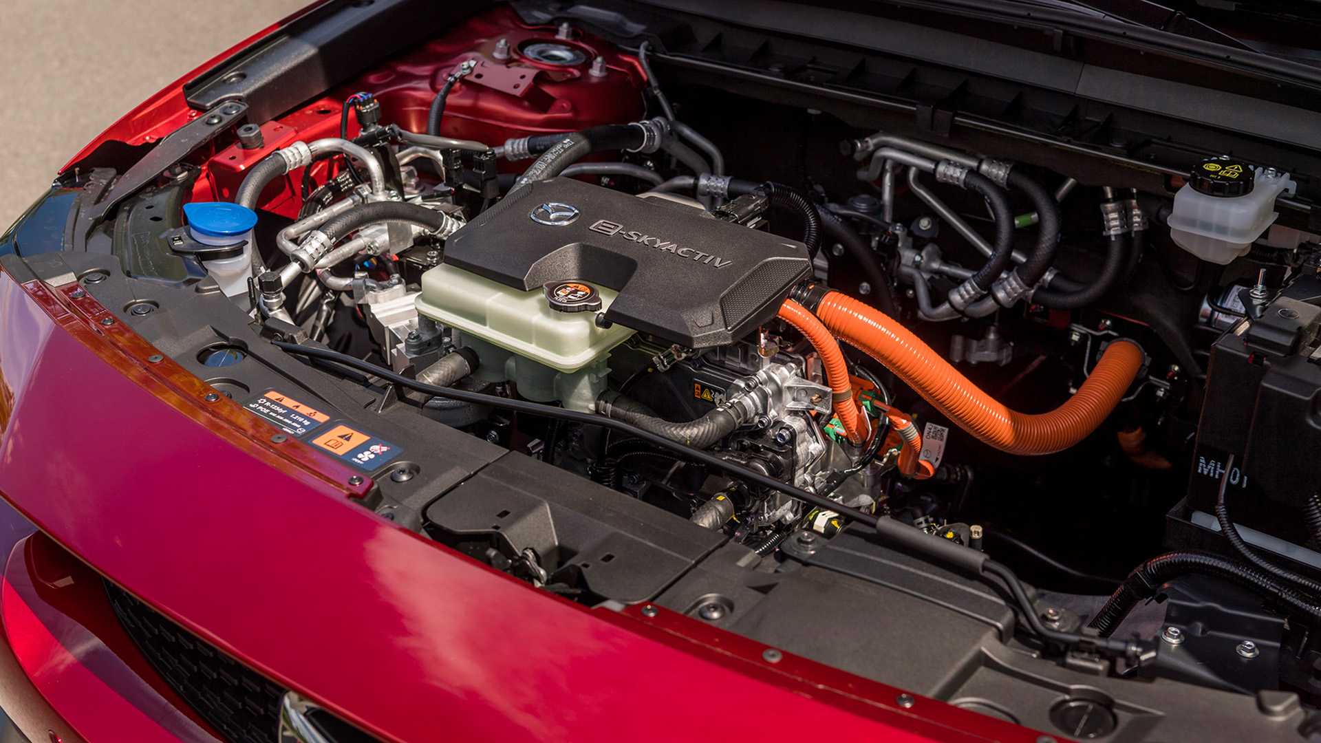 Под капотом Mazda MX-30 установлен MHEV-гибридный силовой агрегат, состоящий из 2-литрового бензомотора мощностью в 145 л. с. и 48-вольтового стартер-генератора.