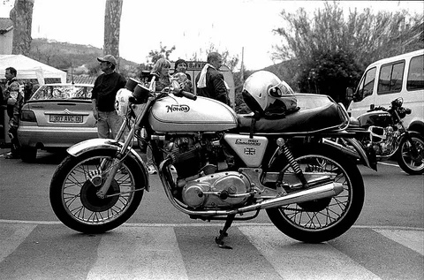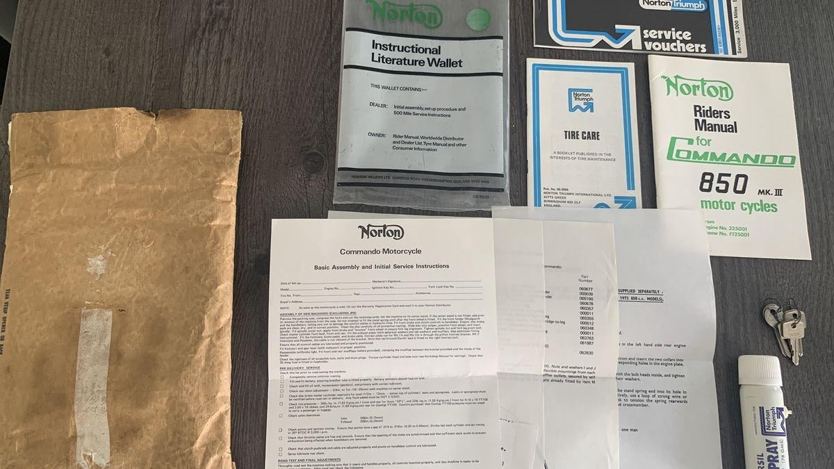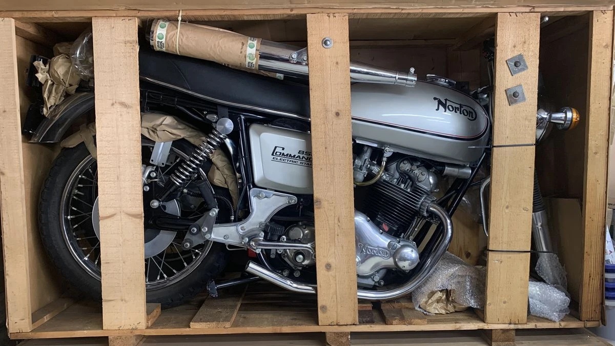 Это британский классик Norton Commando 850 Interstate. Его нынешний владелец, поклонник марки Norton Кевин Мэддокс из Великобритании, сообщил, что предыдущий хозяин байка жил ещё в 3-х странах — Бельгии, Нидерландах и Испании — и всюду возил с собой ящик с мотоциклом.