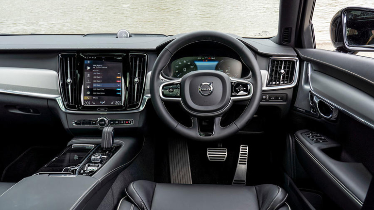 V90 T6 доступен в двух комплектациях, выделяется спортивная R-Design, подразумевающая специальный обвес, заниженную подвеску и 19-дюймовые легкосплавные диски, а также черный кожаный салон со спортивными сиденьями.